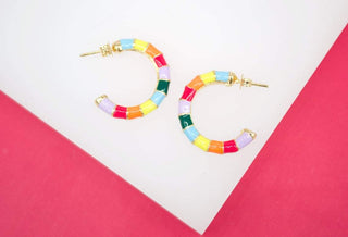 18K Gold Filled Colorful Enamel Open Hoop Stud Earrings (L55)