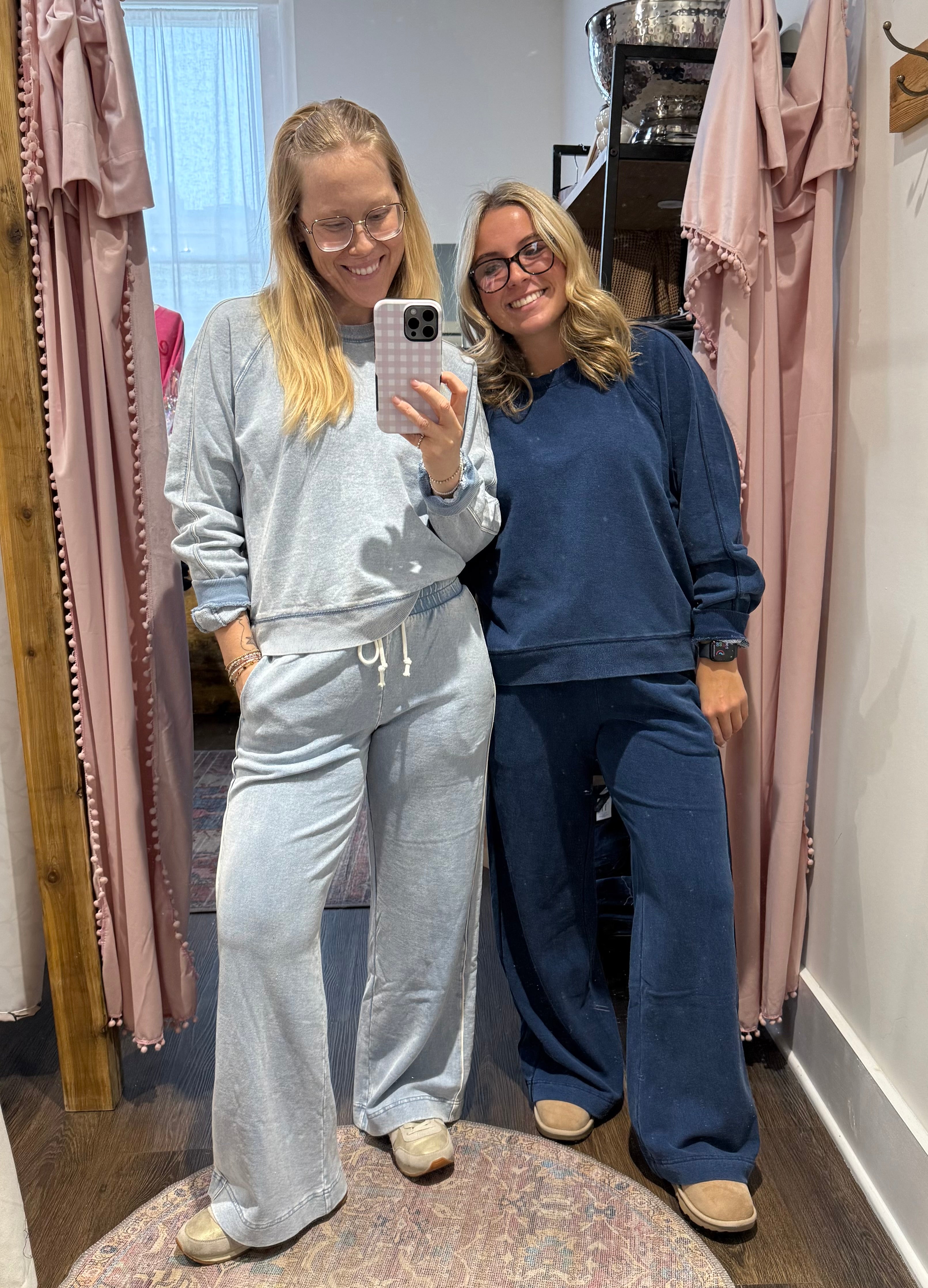 This indigo crewneck sweatshirt made of midweight knit denim french terry is your perfect travel companion. It's comfy yet stylish, making it ideal for long flights and layovers. Each one is handcrafted, giving it a unique character that sets it apart from the rest.