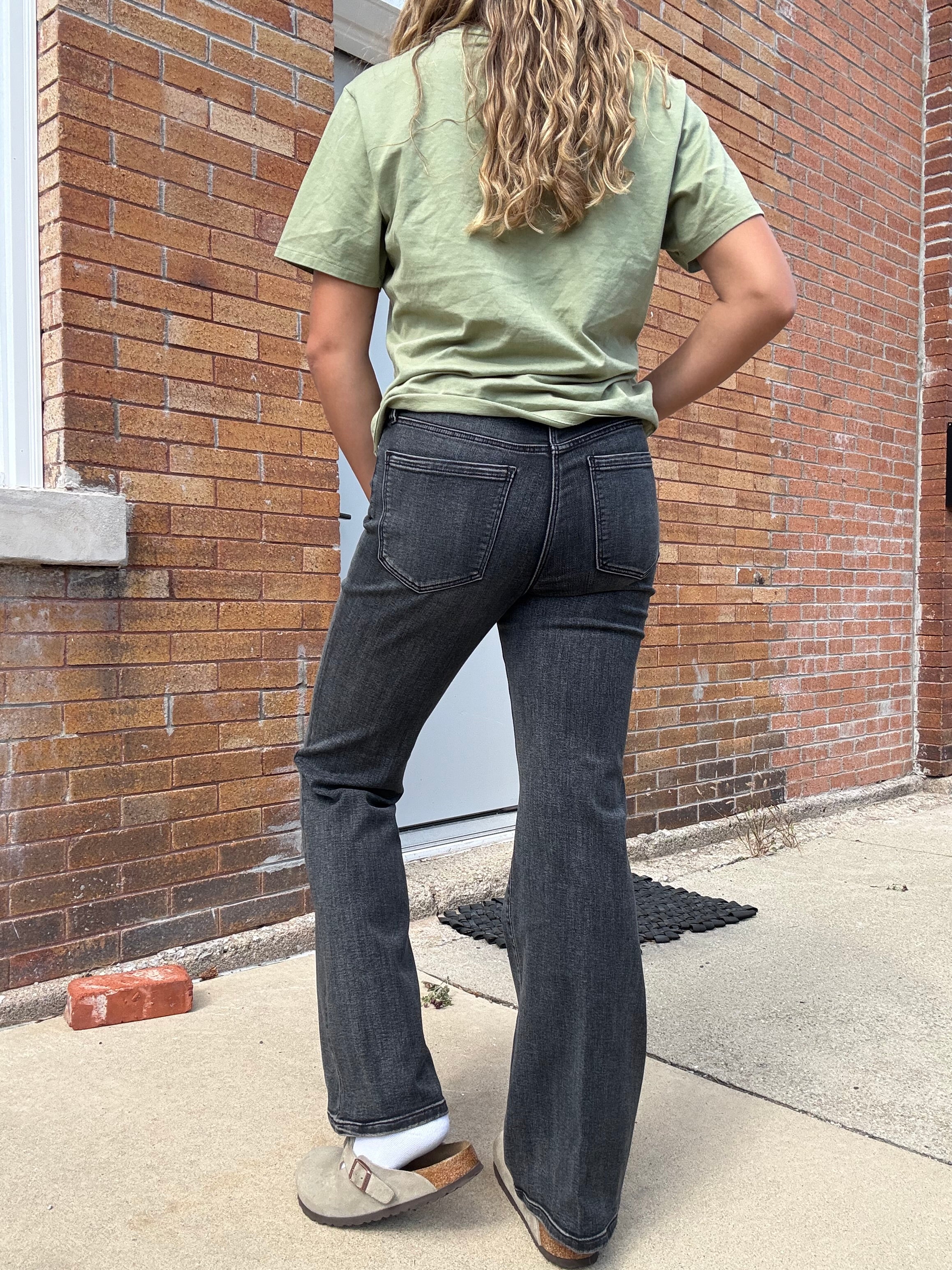 We love this cook washed black for fall & winter! Our mid-rise Lucy bootcut jean is designed to fit snugly through hips and thighs while flaring at the knee and leg opening for a classic bootcut silhouette. A fit you will love!