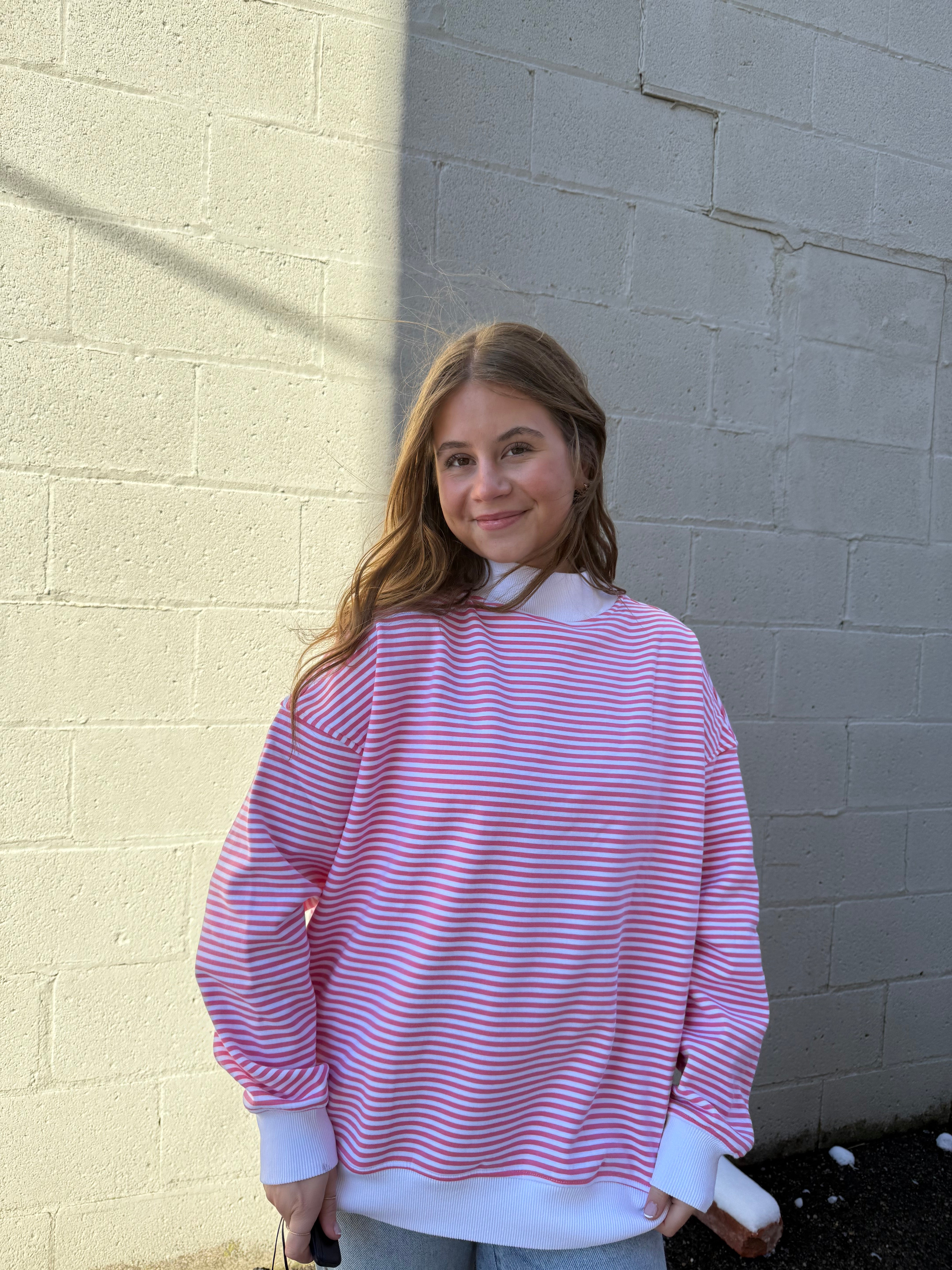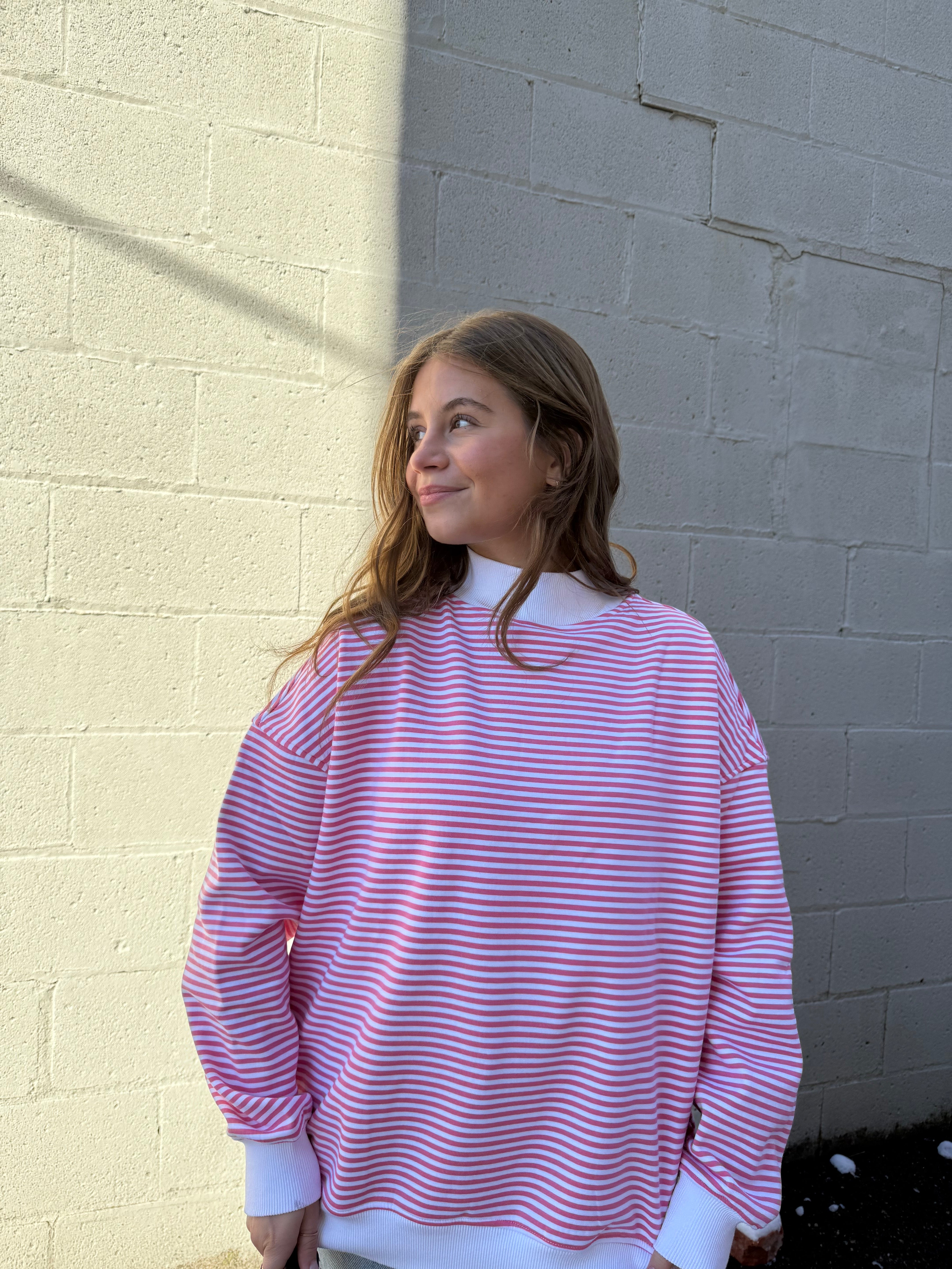 Light Pink and White Big Striped Mockneck Sweatshirt – Lois Pearl Boutique
