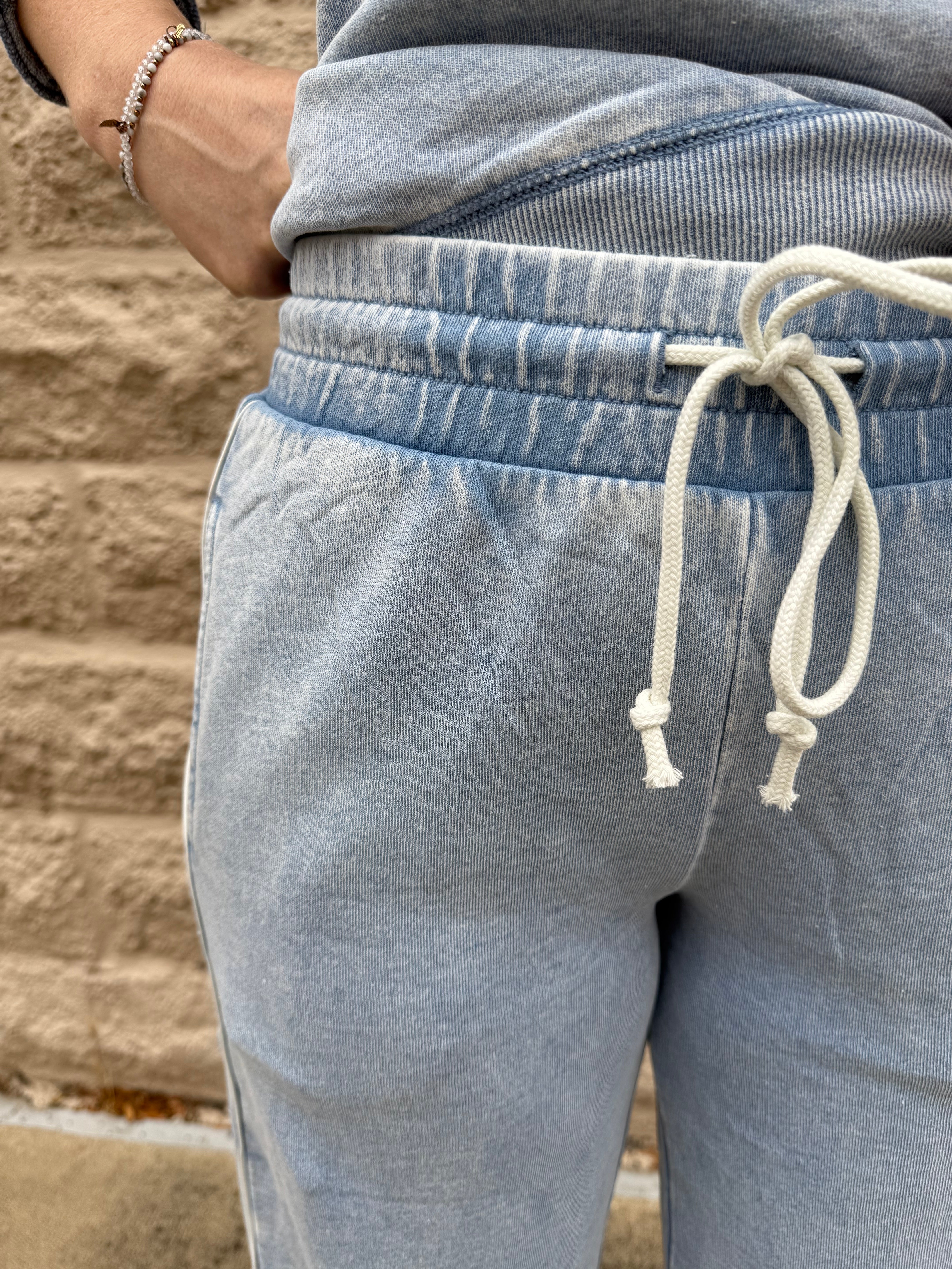- Knit Denim French Terry: 85% Cotton, 15% Polyester