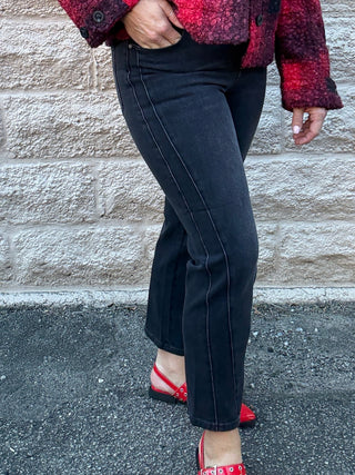 Utility Crop in Black & Tan Houndstooth by Liverpool