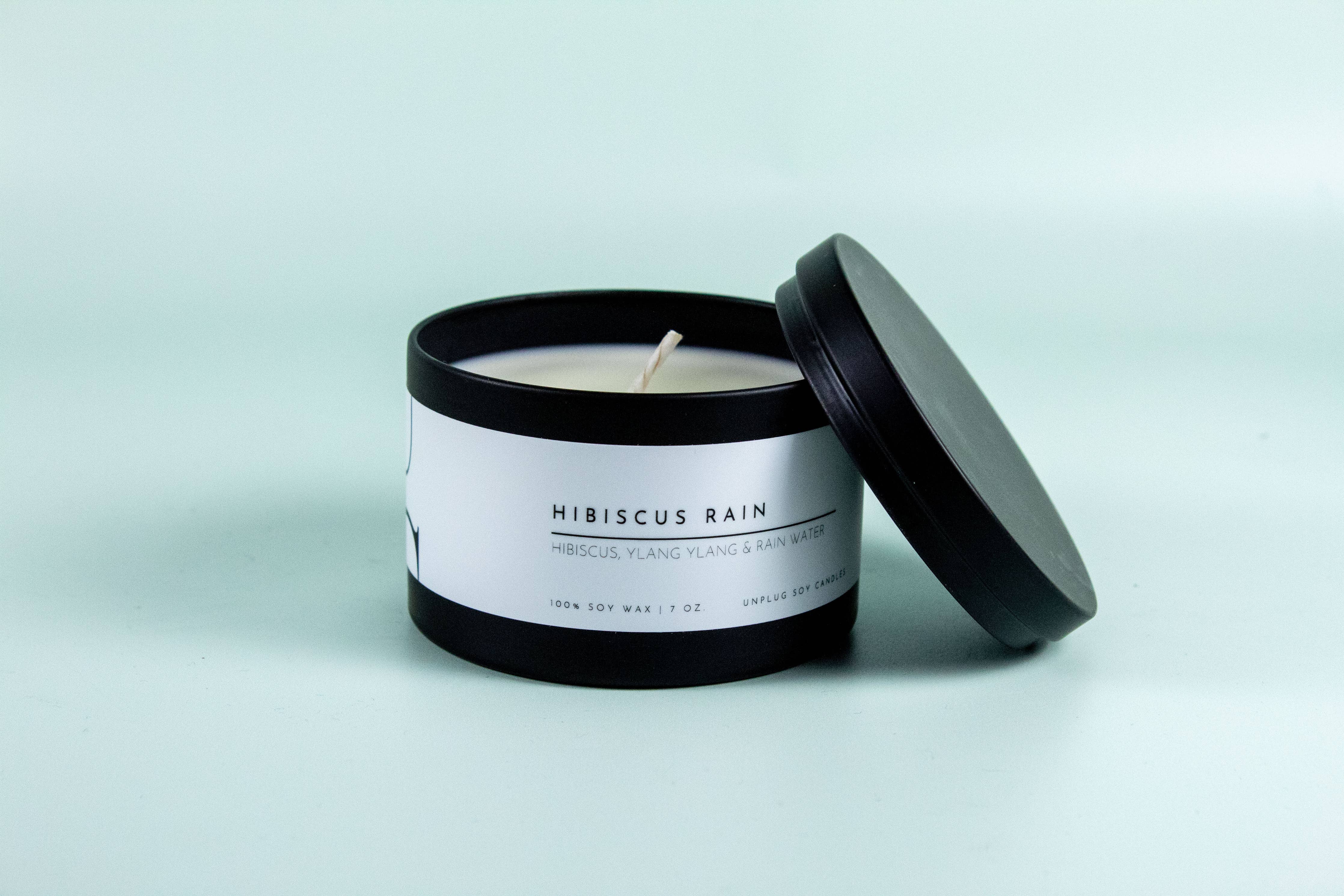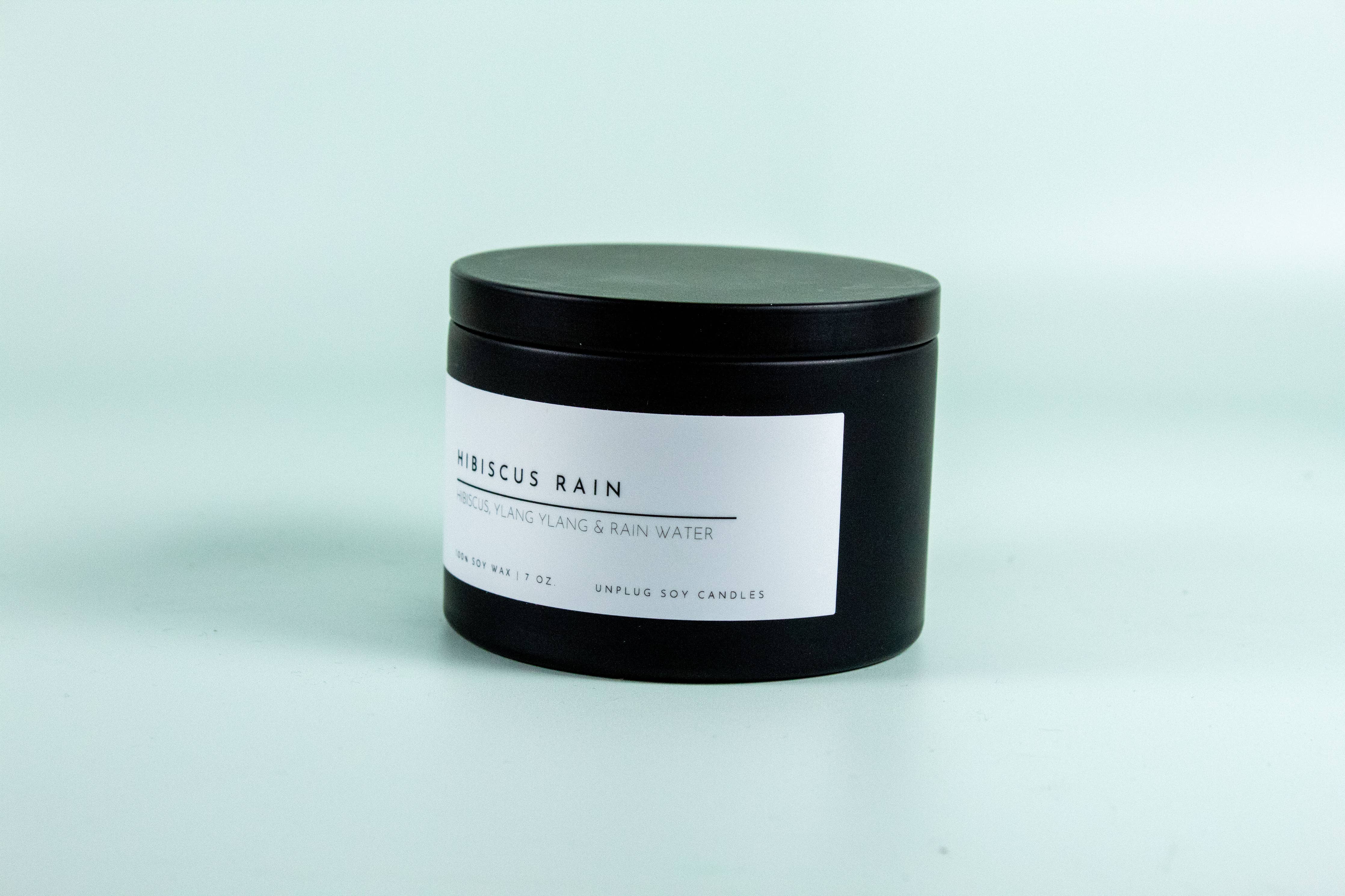 Our Matte Black Tins are the perfect way for customers to familiarize themselves with our scents and are great to keep by the check out counter! Each black tin has a beautiful, vinyl white label that gives a high-end, sleek look in any space.