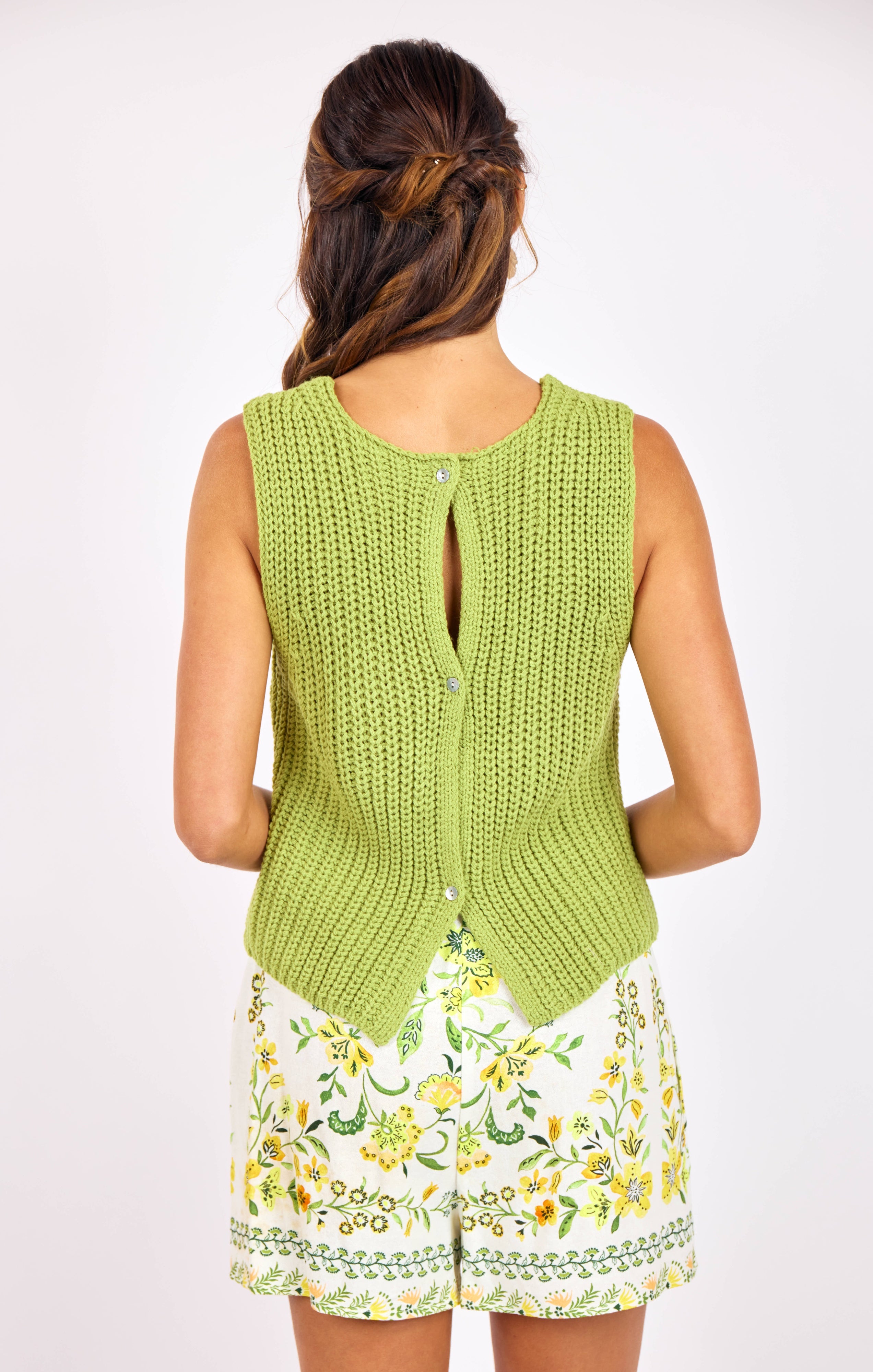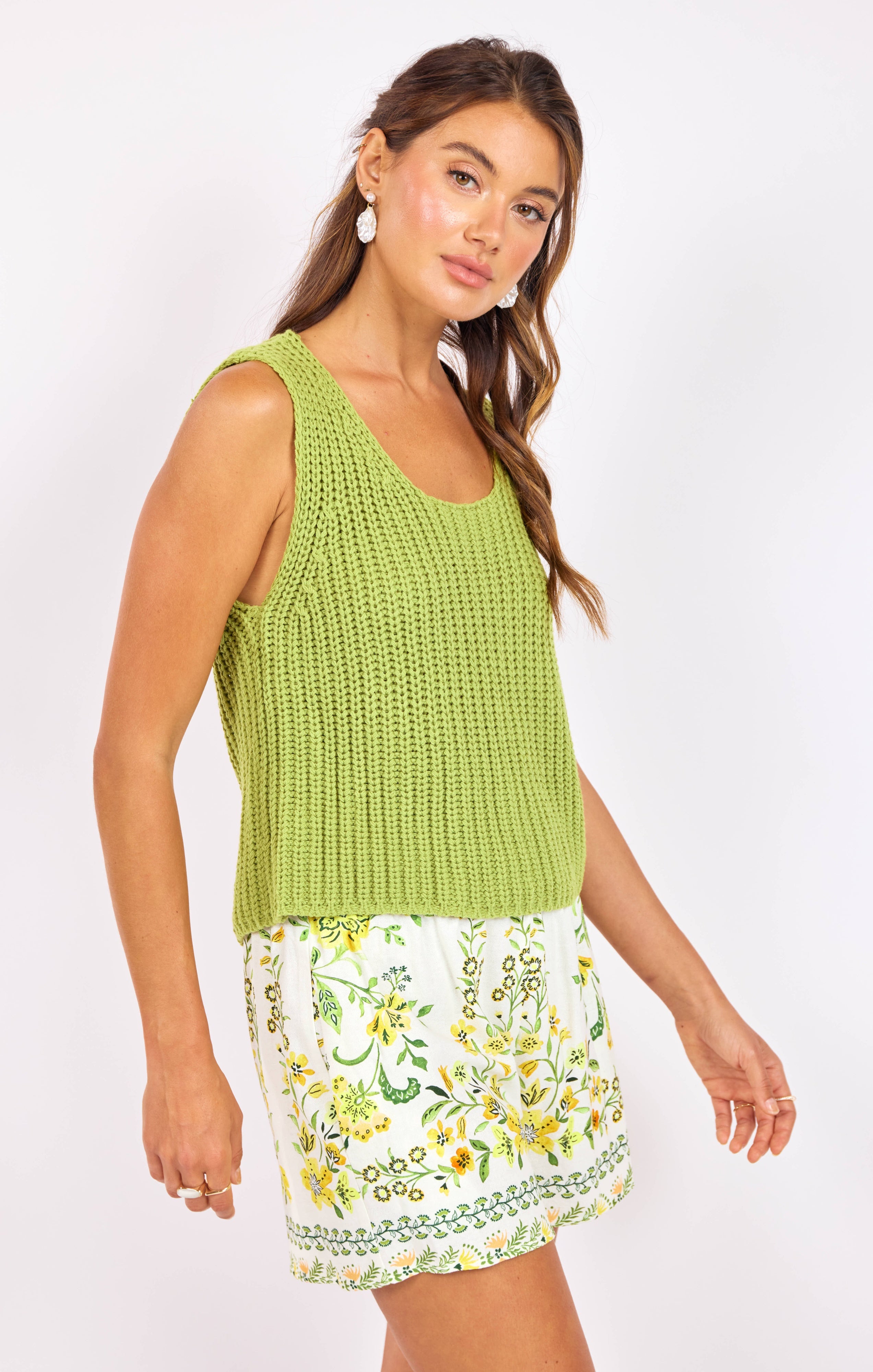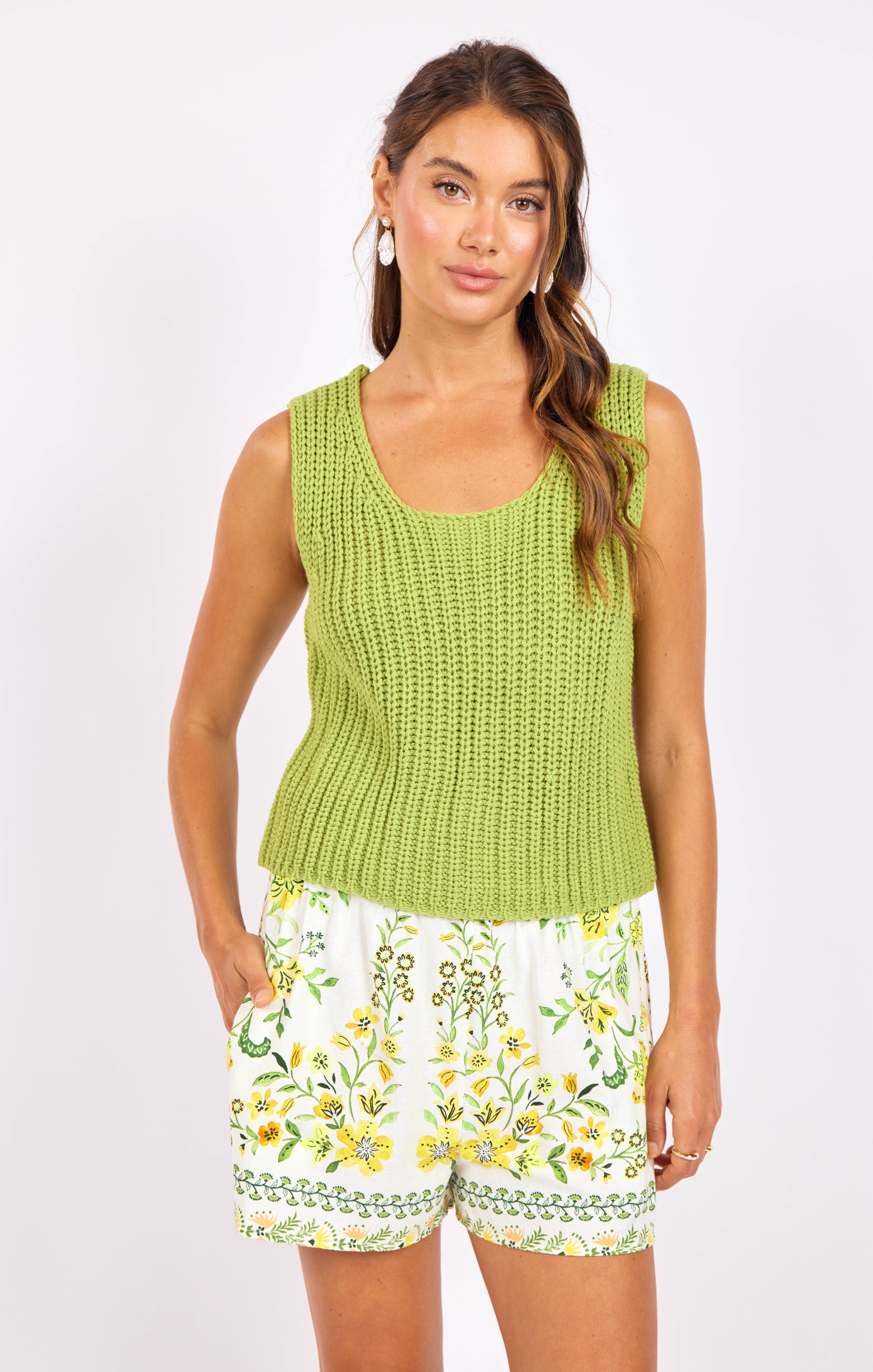 Elevate your spring wardrobe with the Sundays Sweater Tank by Sage the Label—a playful piece in a punchy green that captures the season's fresh energy. Crafted from 100% acrylic, this easy-fit tank offers comfortable, effortless style perfect for layering or wearing solo.