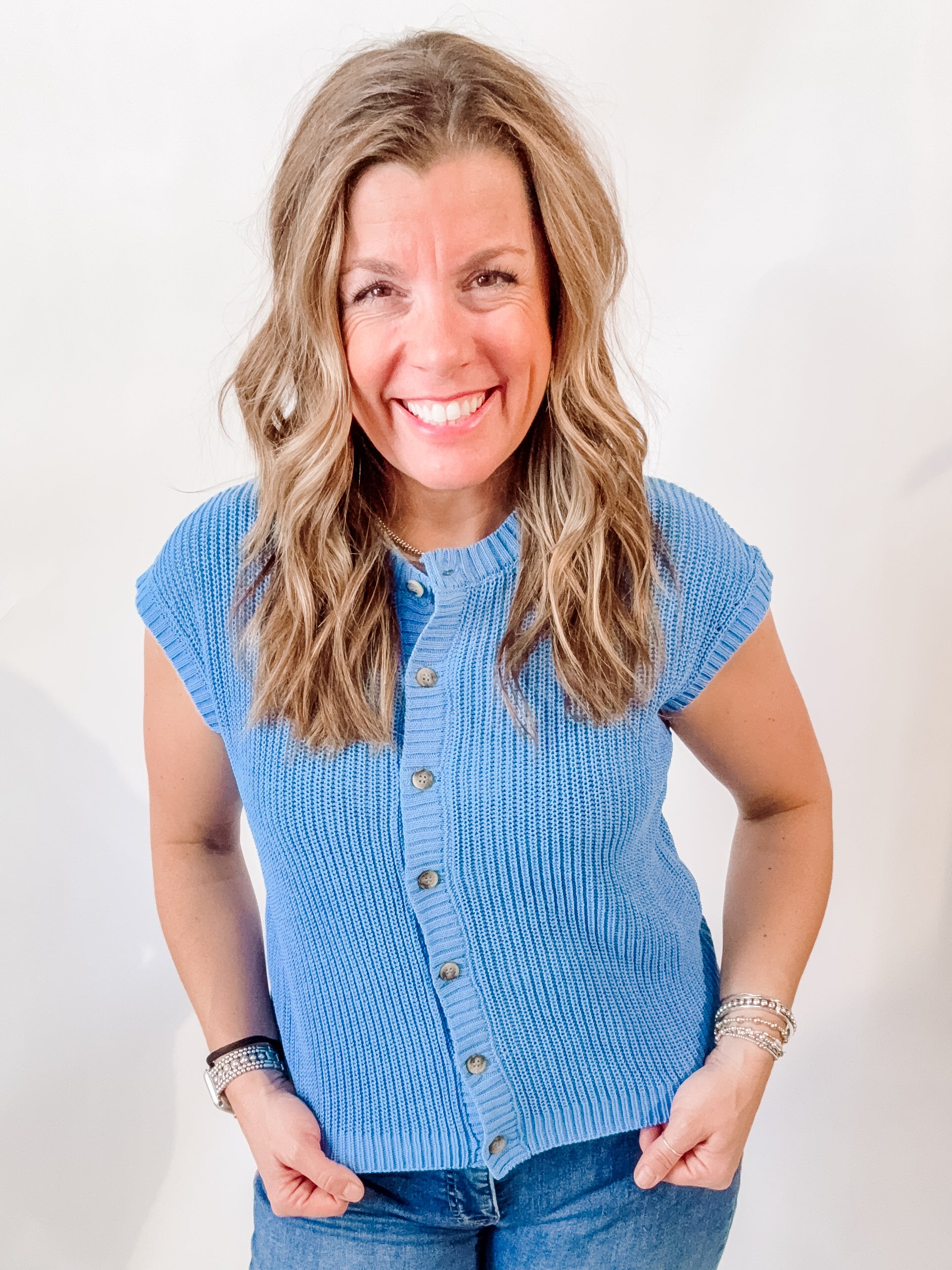 This vibrant blue cardigan is your go-to piece for effortless layering or standalone style. Whether you're reaching for it solo or pairing it over your favorite tee, its crisp hue and button-down design bring instant freshness to any spring wardrobe. Versatile, charming, and ready for anything.