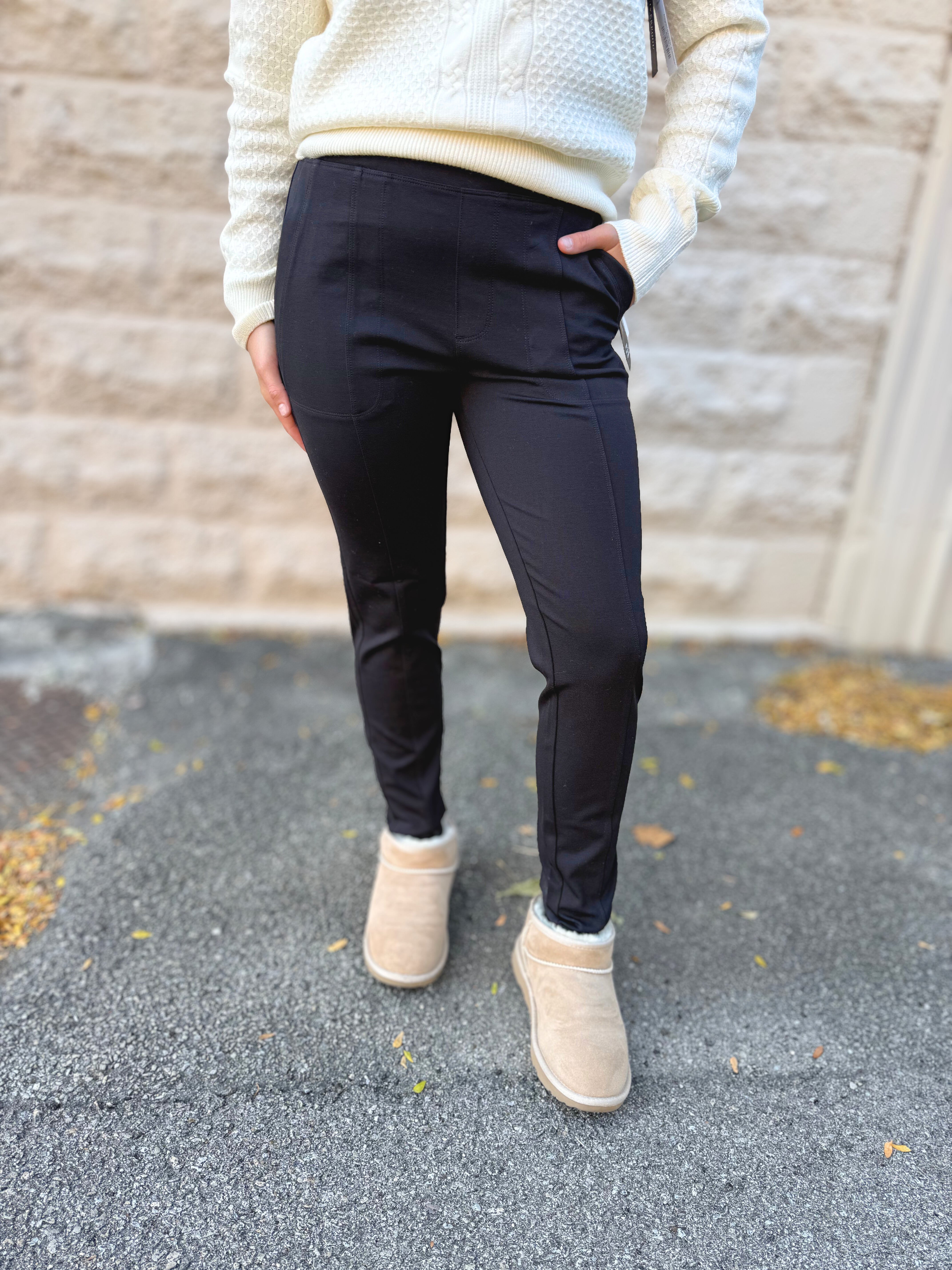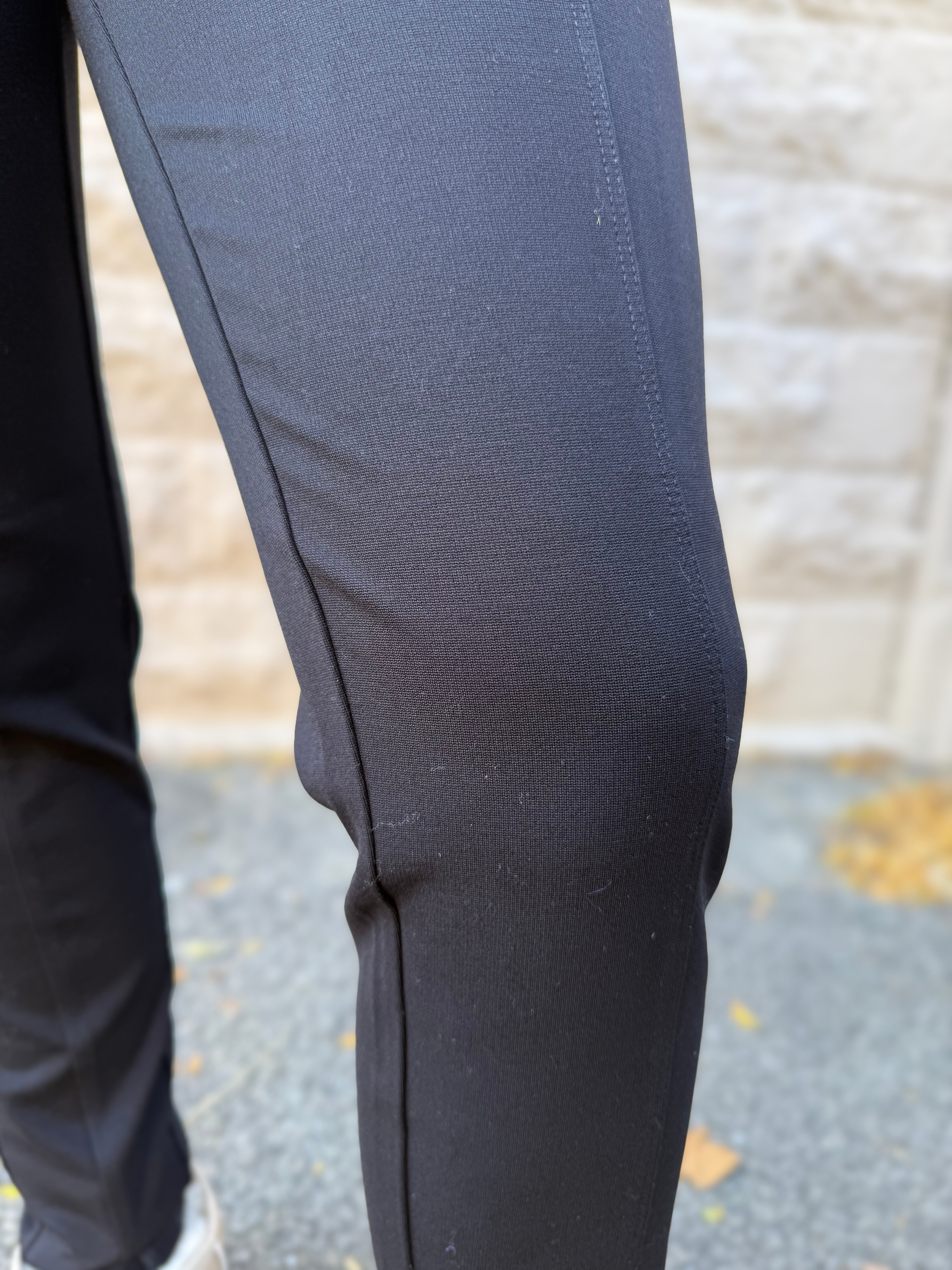 Meet your new wardrobe MVP: the Nikki Pull-on Trouser Legging. This clever hybrid ditches the fuss of zippers and buttons while keeping all the sophistication of tailored trousers. The high-rise waistband hugs you in all the right ways, and the sleek silhouette pairs beautifully with everything from sneakers to heels. Bonus: real front pockets and chic faux details make it look polished enough for the office, yet comfy enough to live in all day long.
