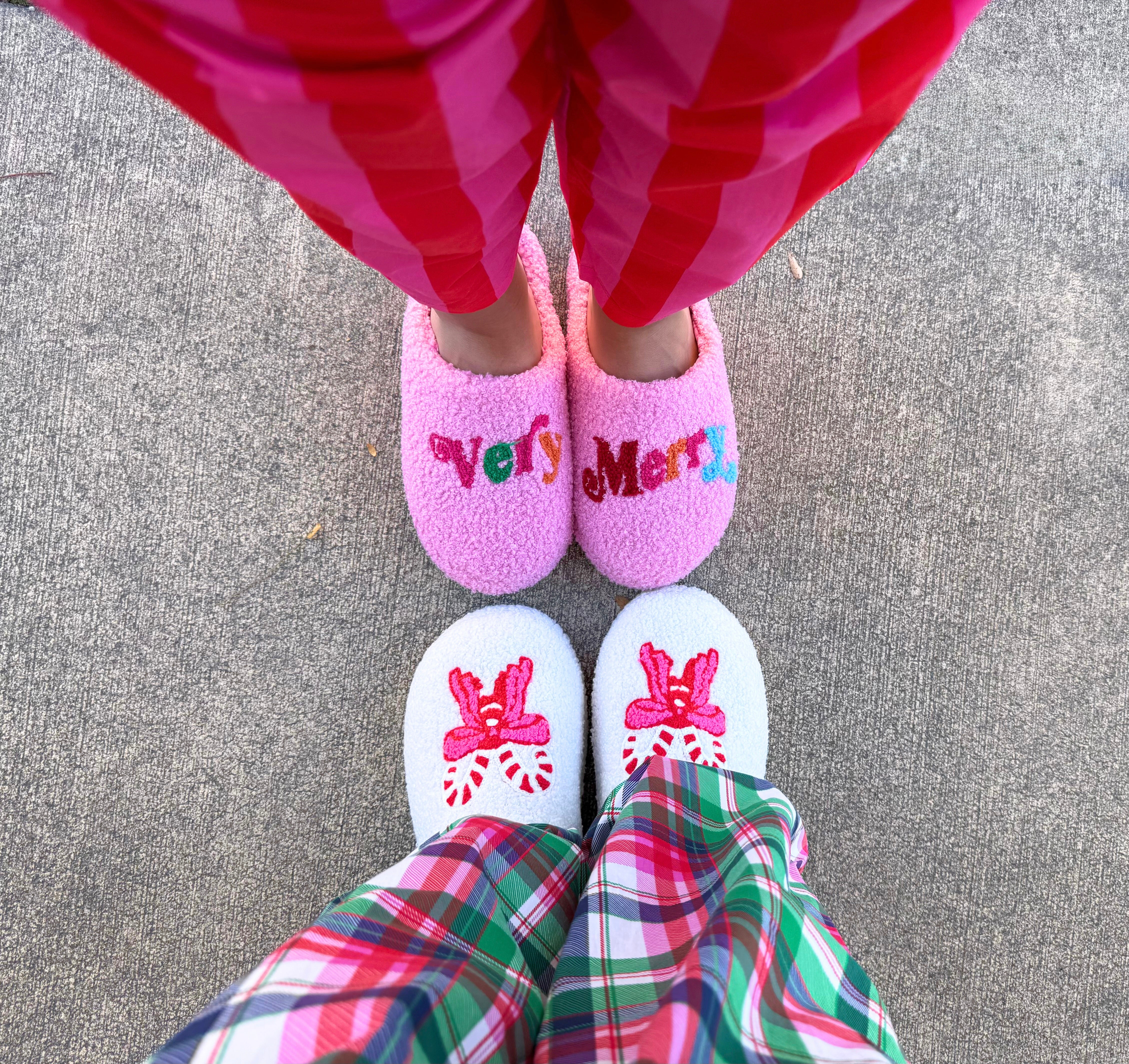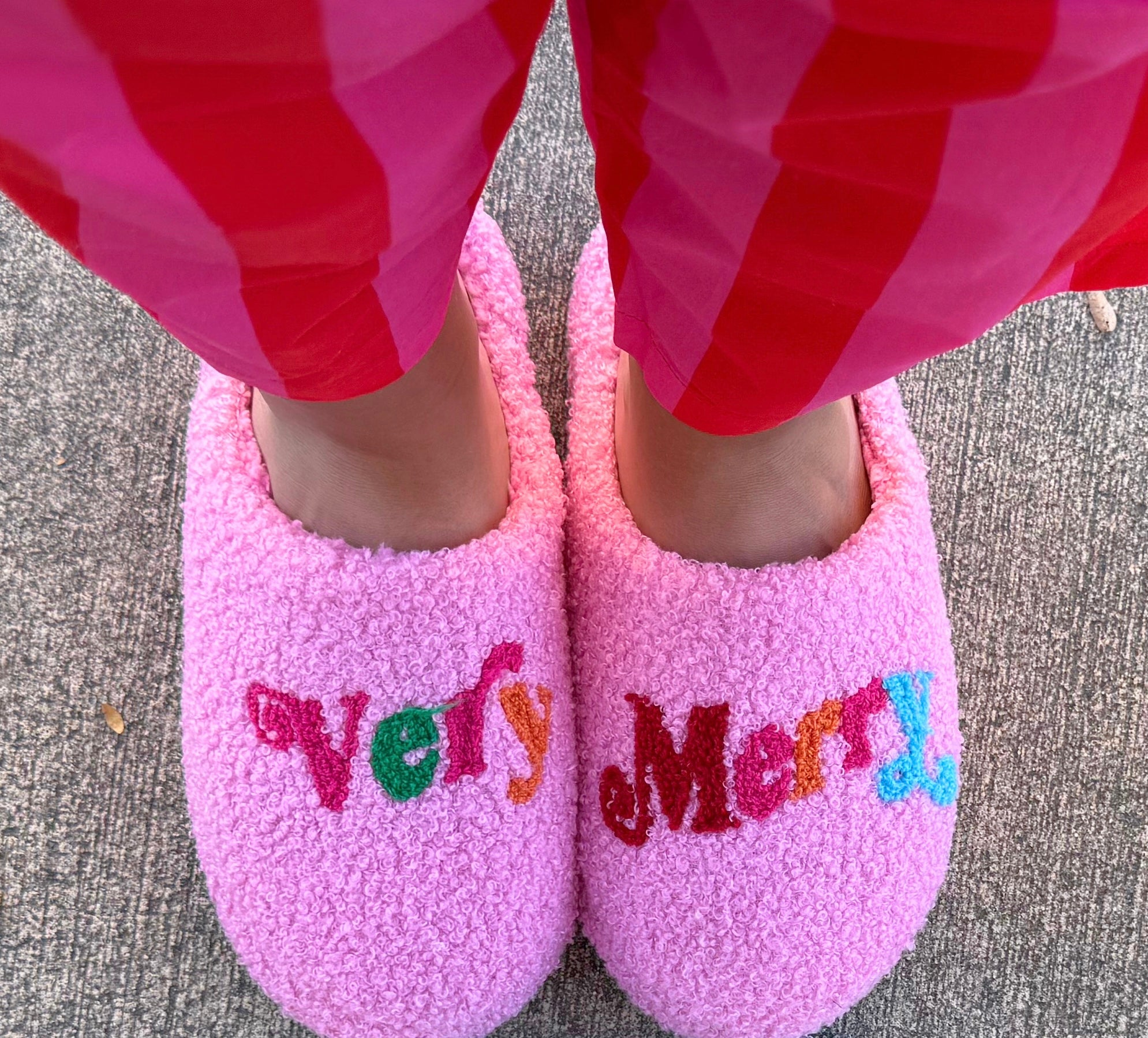 Step into comfort and style with Shiraleah's Assorted Set of 2 Sizes 'Very Merry' Slippers in pink. These slippers are an essential addition to your collection, ensuring your feet stay warm and cozy. As part of Shiraleah's commitment to creating trend-driven lifestyle products, these slippers encapsulate the brand's focus on making life special. Ideal as a thoughtful gift for a friend or a treat for yourself, they embody the joy of giving and receiving. Enjoy the feeling of special moments with Shiraleah.