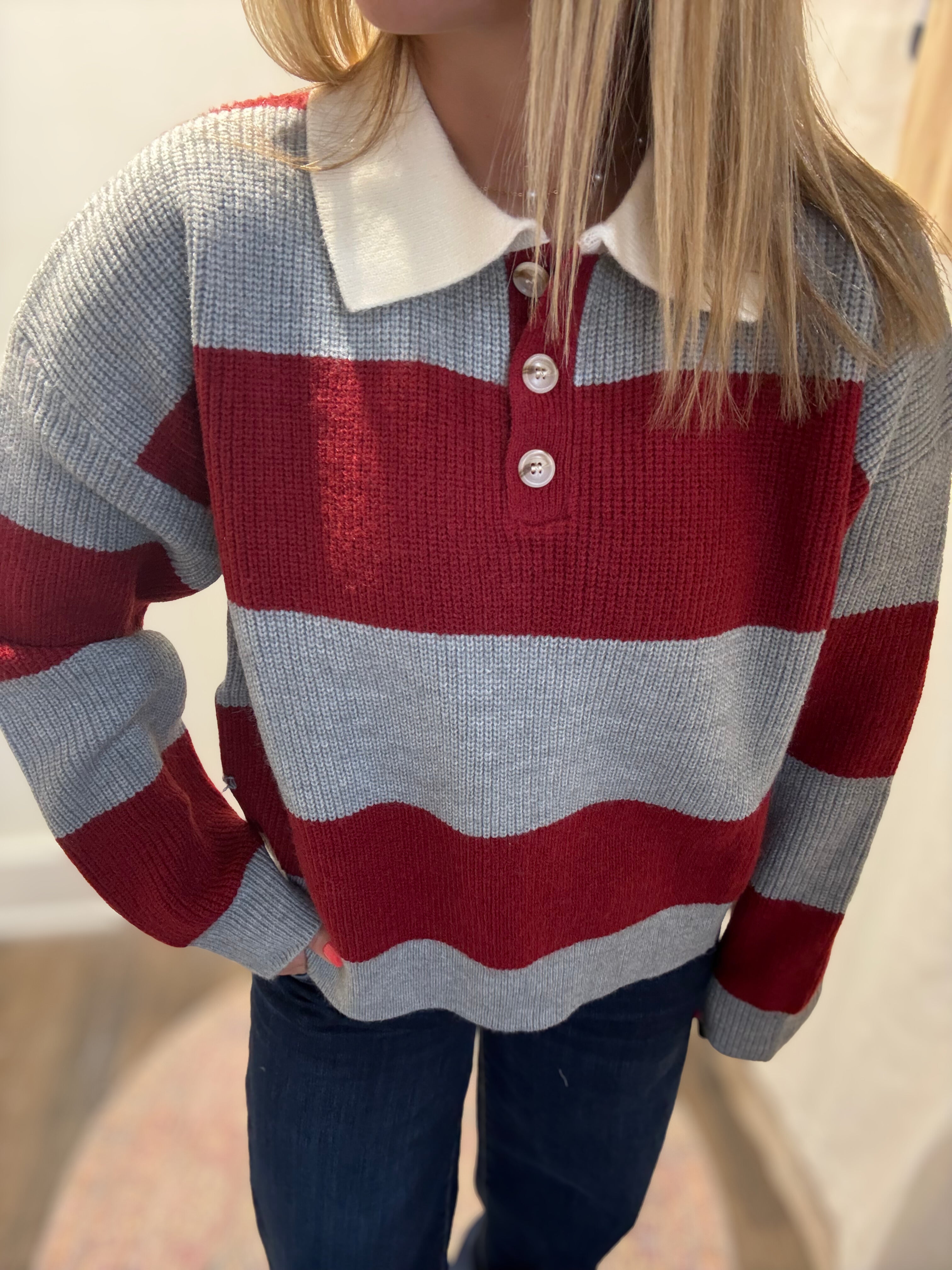 Smart and stylish, this buttoned striped collared long sleeve top offers a polished look with everyday comfort. Featuring classic stripes, a crisp collar, and full button-down front, it's perfect for work, casual outings, or layering under jackets. A timeless piece for effortless styling.