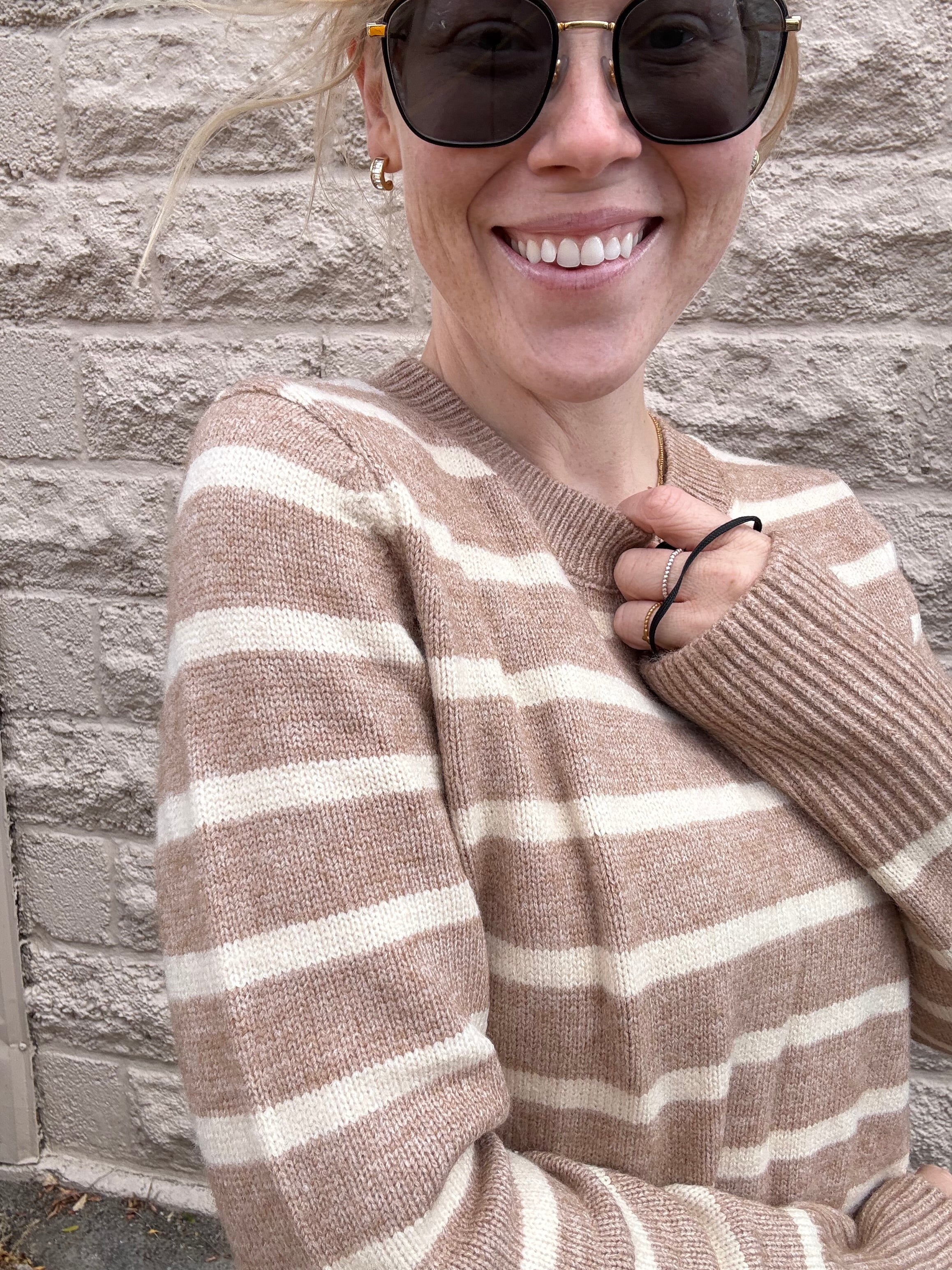 The Sheri striped sweater makes getting dressed a breeze! Beautiful shades of tan and cream add a soft note to this already soft and sweet sweater. You’re a dream, Sheri!