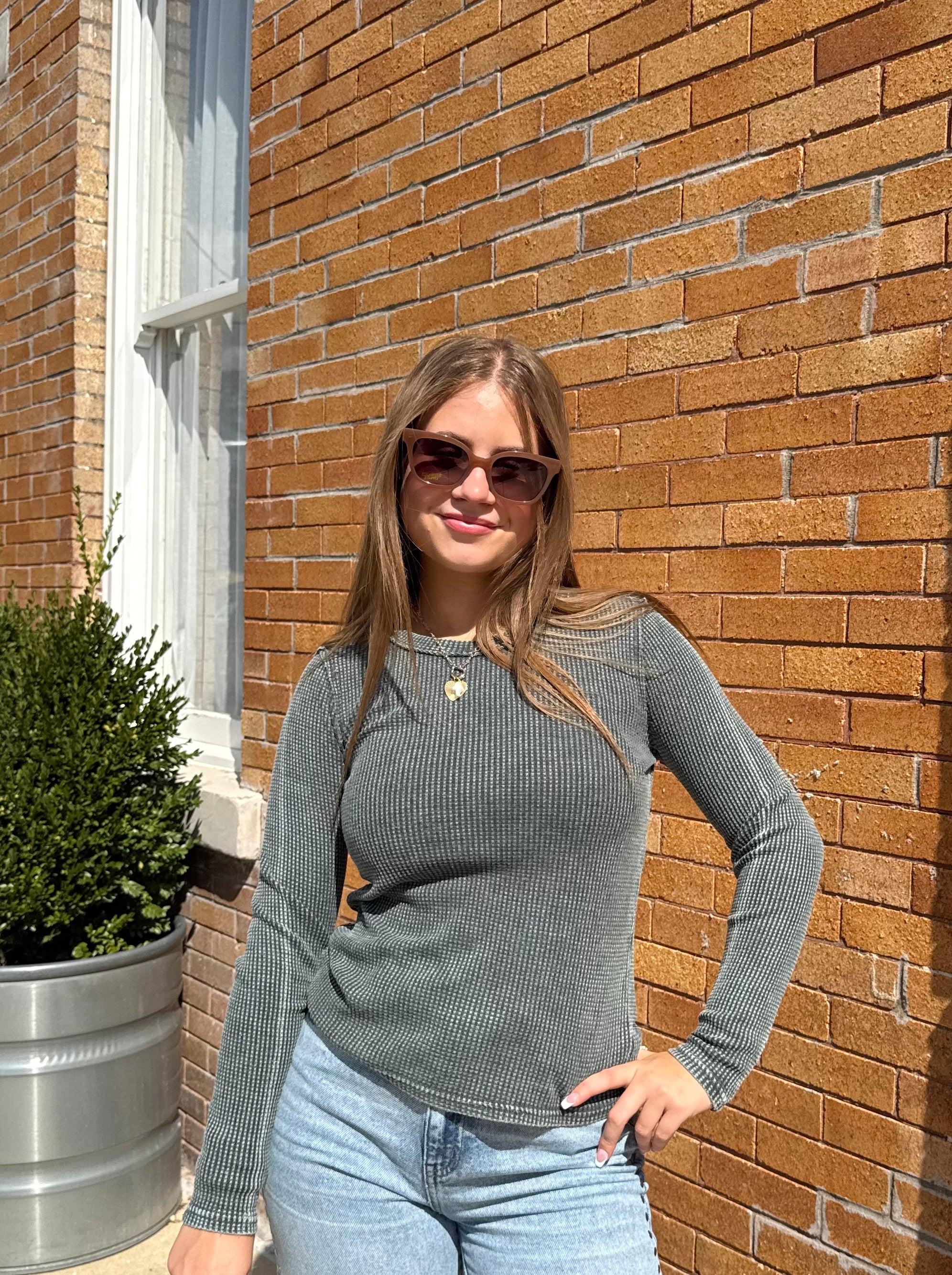 Arlet is the coziest waffle knit top! Perfect on her own, or layered with your favorite flannels and vests.
