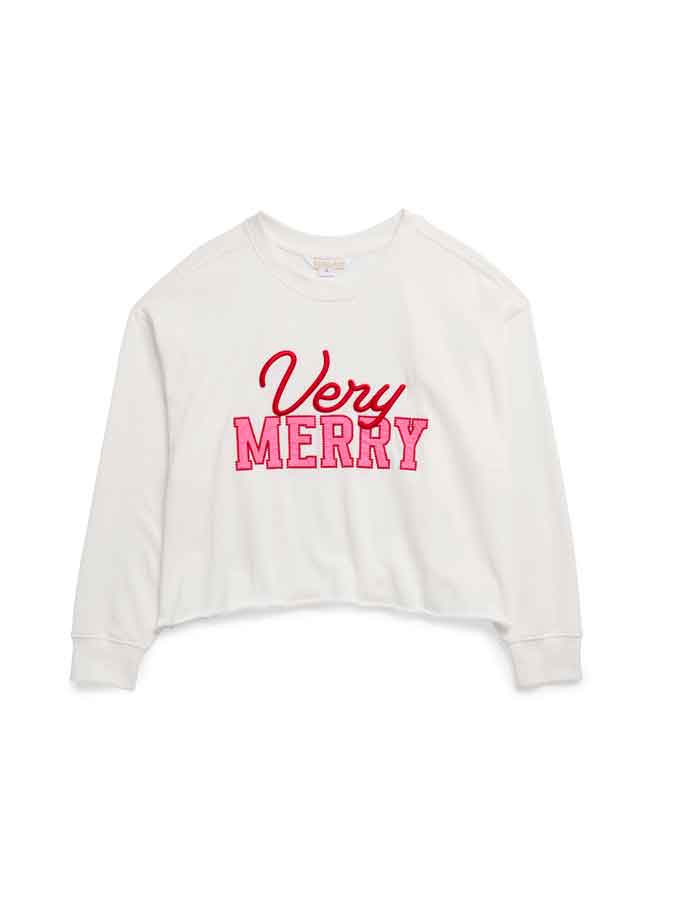 Made from 53% cotton and 47% polyester. Machine wash, tumble dry low, Assorted Set contains 1 x S, 2 x M, 2 x L, 1 x XL. Get in the festive spirit with the "Very Merry" Lounge Sweatshirt—your cozy go-to for holiday cheer! Made from ultra-soft fabric with a relaxed, boxy fit, this cream-colored pullover features bold red and pink embroidery that pops. The playful lettering adds a jolly vibe perfect for cozy mornings, movie nights, or gift wrapping marathons. Pair it with the coordinating Pink Car Boxer Shorts or Plaid Boxer Pants for a look that’s merry from head to toe.