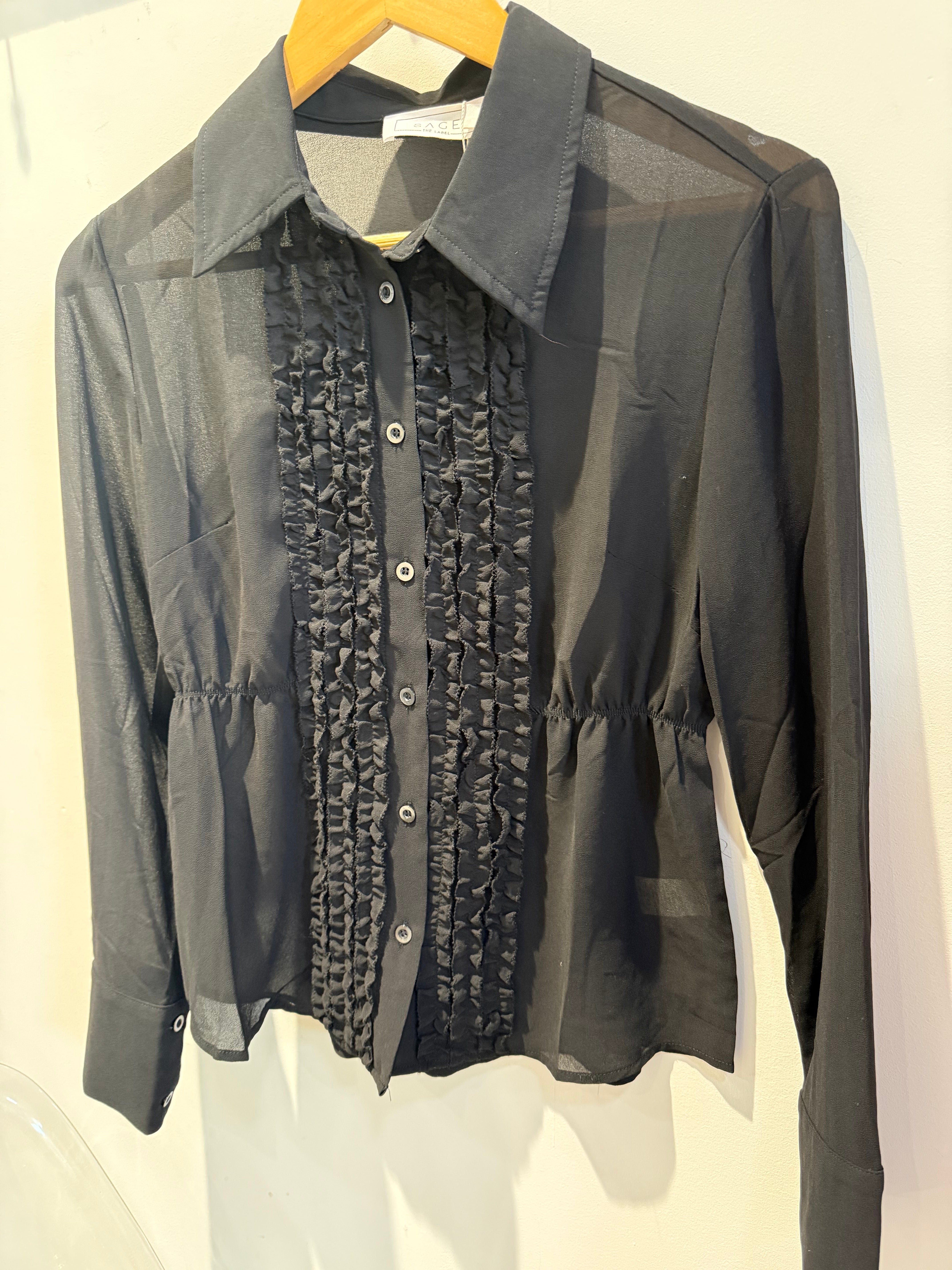 Our elevated Tuxedo Blouse is the perfect elegant addition to your holiday wardrobe. Cut with a classic button down style that is timeless and flattering.