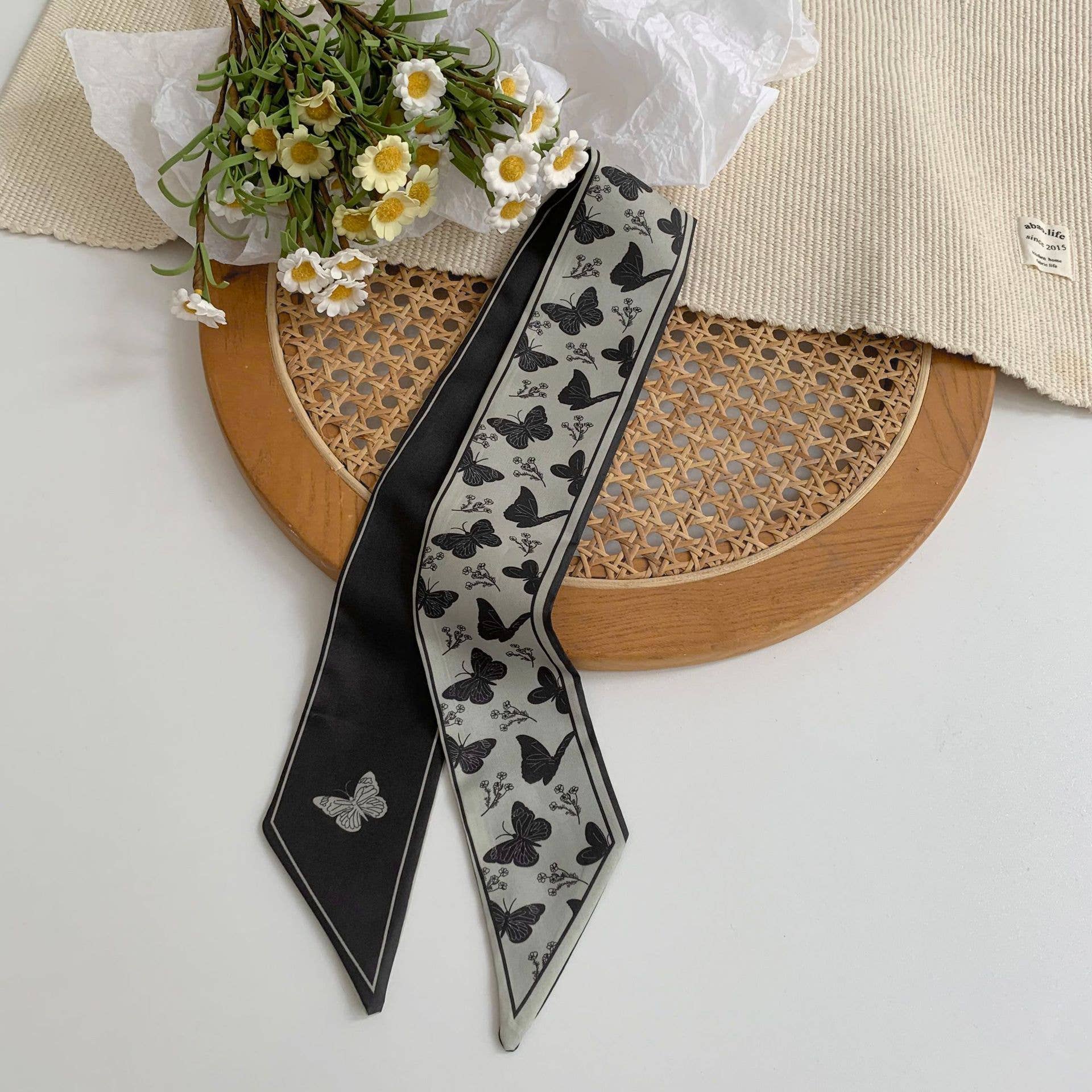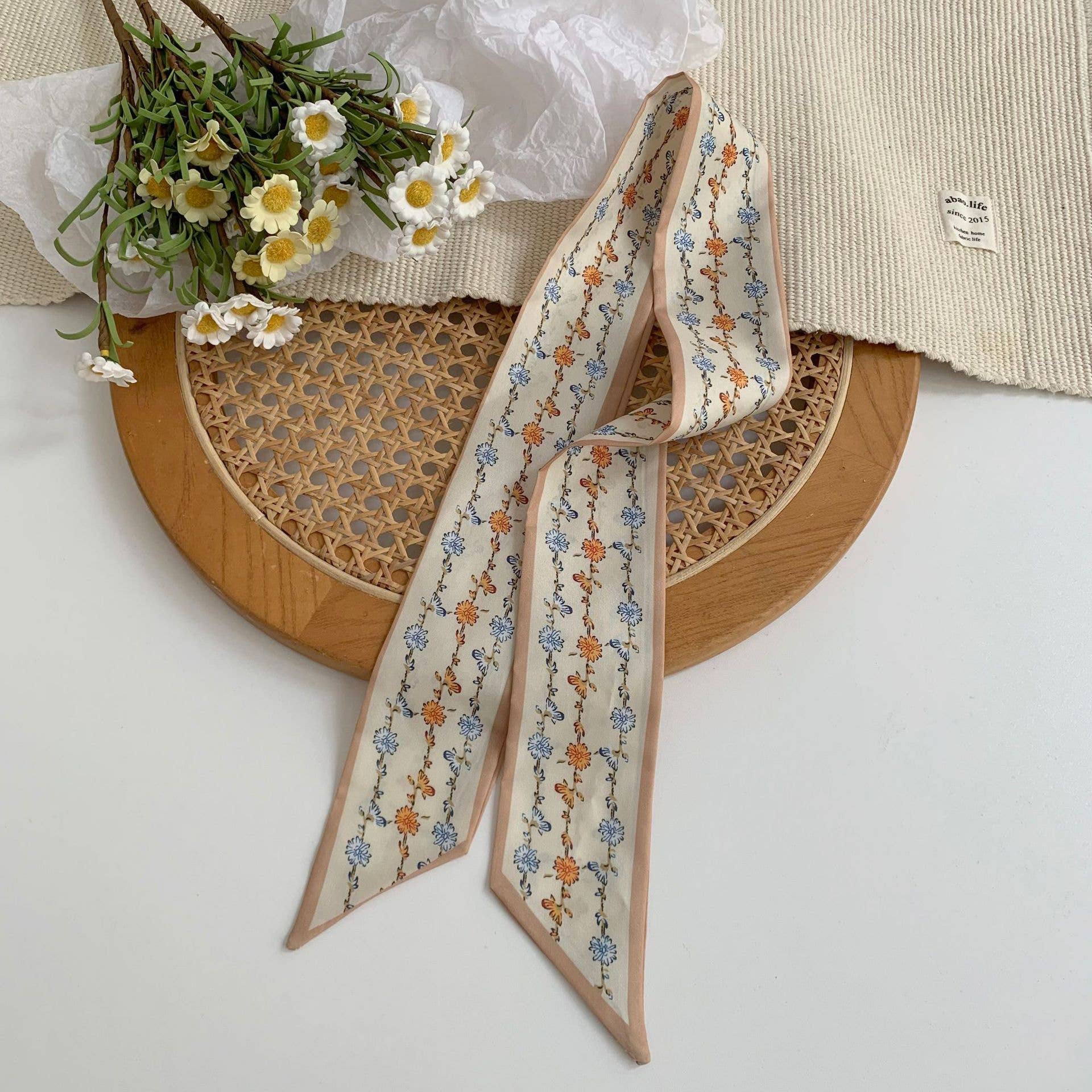 Floral Twilly Scarf ,Skinny Silk Hair Ribbon – Lois Pearl Boutique
