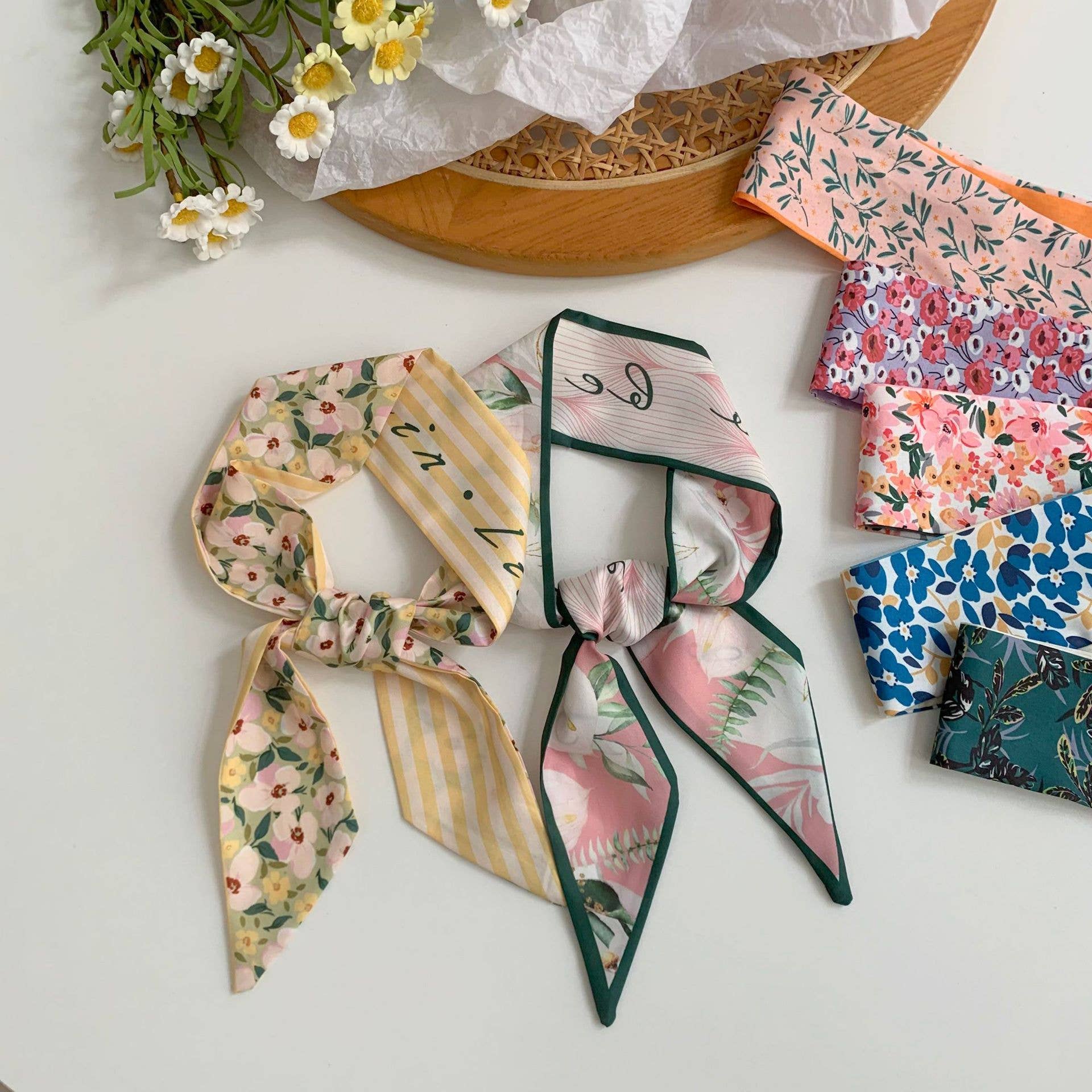 Floral Twilly Scarf ,Skinny Silk Hair Ribbon